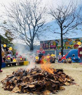 集めておいた落ち葉でおいもを焼きます