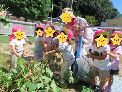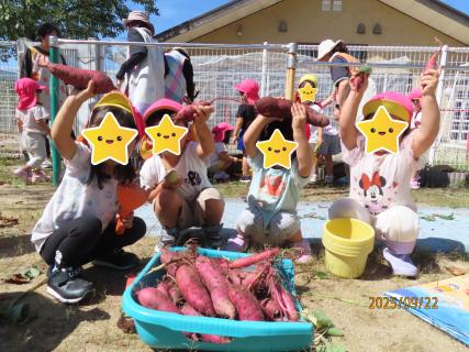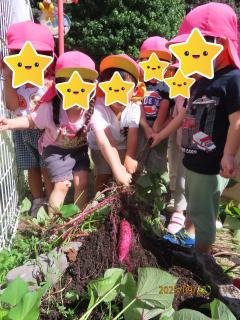 りんご組(2歳児)が、春に植えたさつまいもの収穫をしました!