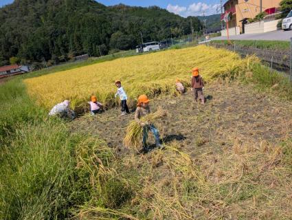 春に田植え体験をさせてもらい、9月に稲刈りをさせてもらいました。