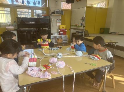 年中・年少組さんがマフラー編みに挑戦!!