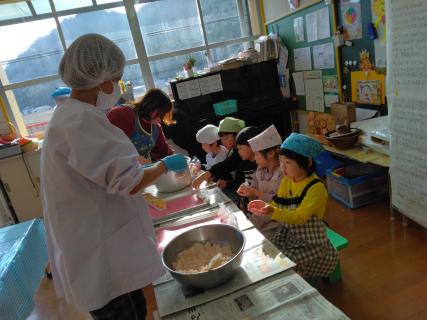 収穫した野菜は給食先生に切ってもらったり、給食で出してもらったりしています!